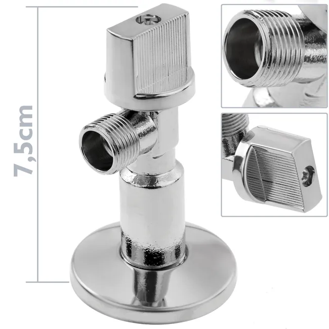 - Le robinet équerre a un filetage de 1/2 pouce d’un côté et de 3/8 pouce de l’autre. Cela signifie qu’il peut être utilisé pour relier des tuyaux ou des appareils ayant ces diamètres de filetage.