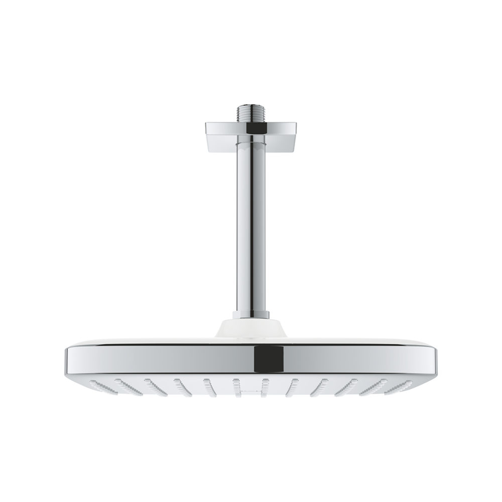- Design moderne : Tête de douche carrée et bras de plafond pour une esthétique contemporaine.