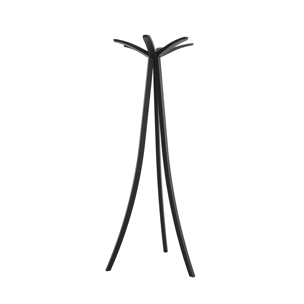 Ce porte-manteau minimaliste est un élément de décoration fonctionnel qui s’intégrera facilement à tout intérieur moderne, qu’il soit résidentiel ou commercial. Présentant une structure élégante et stylée en bois de frêne teinté noir, il offre un look unique pour ranger les manteaux, les vestes et les accessoires en un seul endroit. La construction robuste se compose de trois pieds inclinés reliés au sommet qui se transforment en patères pour suspendre les manteaux et les accessoires.